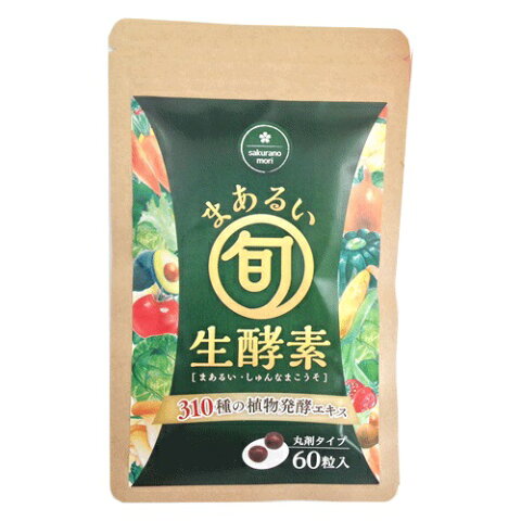 ■品名:まあるい旬生酵素 ■名称:植物発酵エキス加工食品 ■内容量:60粒×2 ■全成分: 植物発酵エキス(黒糖、脱脂粉乳、根菜類(にんじん、たまねぎ、だいこん、その他)、葉物野菜(はくさい、きゃべつ、菜の花、その他)、果菜類(とまと、ピーマン、きゅうり、その他)、果実類(みかん、いよかん、はっさく、その他)、穀類(大麦、玄米、黒米、その他)、海藻類(こんぶ、ねこんぶ、わかめ、その他)、キノコ類(まいたけ、しいたけ、えりんぎ、その他)、山菜類(ふきのとう、タラの芽、わらび、その他))、甘藷末、でん粉、大豆食物繊維、ショウガ末、ガラクトオリゴ糖、梅エキス、有胞子性乳酸菌、オタネニンジン末、サンショウ末、マルトデキストリン、乳酸菌凍結乾燥末 (原材料の一部に、小麦、乳、オレンジ、カシューナッツ、キウイフルーツ、ごま、大豆、バナナ、もも、やまいも、りんごを含む) ■メーカー:さくらフォレス株式会社KS ■区分:健康食品 ■製造国:日本 ■お召し上がり方:1 日 2〜6 粒を目安に水またはぬるま湯などでお召し上がり下さい。